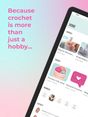 Community Chat Pages: The app features community chat pages where users can connect with fellow crocheters, share their projects, ask for advice, and discuss all things crochet. Members can join different groups based on their interests, such as beginners, advanced crocheters, amigurumi enthusiasts, etc.