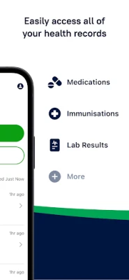 - Access your health summary including lab results, prescribed medications, diagnosed conditions, and immunisation history