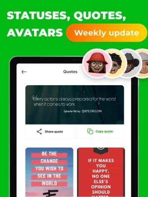 Features: – WhatsApp Account – Quotes (update every week) – Statuses (update every week) – Avatar images – Kaomoji – Direct chat – Text repeater – Private notes – Private web browser – Pin code app secure
