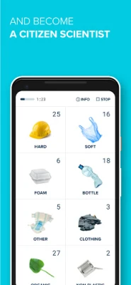 - Use our defined categories to count waste items in real time on your screen