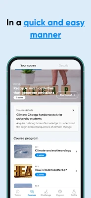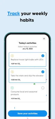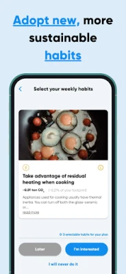 You will also be able to create a personal plan to live in a more sustainable manner starting by calculating your carbon footprint and choosing habits to reduce it week after week. You will also receive tips to guide your habit development journey.