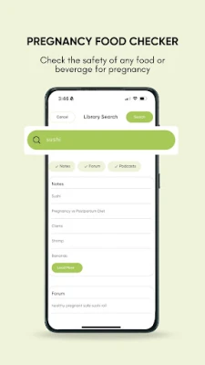 • “CAN I EAT…?” FOOD CHECKER. Sushi, soft cheese, herbal tea—search any food, ingredient, or drink and see pregnancy-safe guidance backed by research.