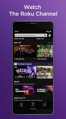 • Stream free movies, live TV, and more on the go with The Roku Channel