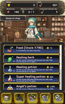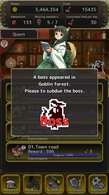 ·Clear quests and gain rewards! Defeat monsters to gain more rewards! · Gather food from the forest to supply your guild members! Save money by foraging! · Recruit new guild members! Find chance encounters at the bar. · Expand the guild! More guild members means more quest rewards! · Build convenient facilities for the guild. Find the right expansion for your guild. · Buy items from the shop! Many convenient items and services for sale. · Unlock more facilities by completing quests!