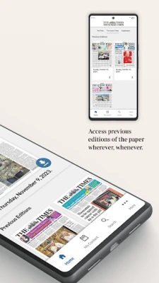 Never miss a thing – the Times e-paper app grants you access to the current edition and the past 30 days' worth of news. Download editions to your device for offline reading, allowing you to catch up on your own time. Stay informed and enlightened, even when you're on the go.
