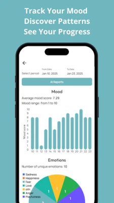 Gain a deeper understanding of your mental patterns with weekly reports. Use the mental health tracker, anxiety tracker, and depression tracker to follow your progress and identify what works best for you. Every emotion and reflection contributes to a better you.