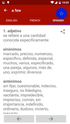 Offline Thesaurus & dictionary Pro is a 3 in 1 containing over 150000 words with their synonyms and antonyms in 3 languages i.e English , Spanish and French Thesaurus.