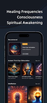 Third Eye uses extremely powerful meditation music focused on third eye opening and the elevation of consciousness. This is achieved through pineal gland stimulation using brainwave entrainment music. The result of elevated consciousness is an increase in our natural extrasensory abilities. With elevated consciousness, awareness, creativity, extrasensory perception, and intuition are all increased.
