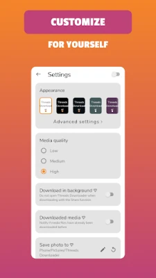 If you need to save photo or video from Threads on your device, then the Threads Downloader app is what you need! Download the threads saver right now and have fun with it! Beautiful, fast, convenient and without intrusive ads! This threads video downloader and threads photo downloader is the best solution for you.