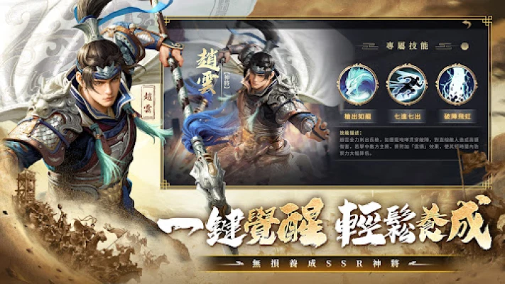 關羽、趙雲、呂布……三國神將全都要!獨創無損養成系統,培養SSR神將毫無壓力!資源共享全員升等,你的三國無廢將!告別繁瑣練等過程,隨時調整最強陣容!