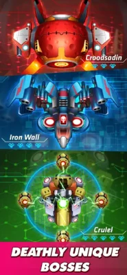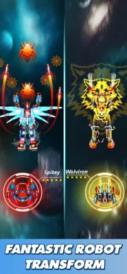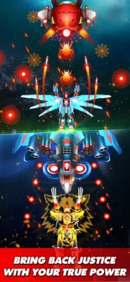 Thunder Fighter Superhero: Strikers Galaxy Attack will have both offline and online mode ( single player and multiplayer). Especially this is the game that players can transform their fighter into robots with more powerful combat power and stronger skills. Other chicken shooter games, other squadron games have never done that.