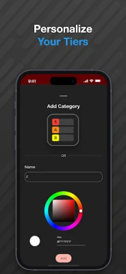 - Add & Customise tier categories with editable names and colors.