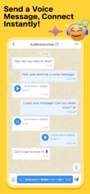 - Engage in dynamic group discussions or enjoy intimate conversations. Our app supports voice messages, making communication even more personal!