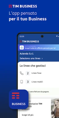 Affidabile e sicura, TIM BUSINESS ti consente di registrare un nuovo account dall’app e di autenticarti con il Face ID o il Touch ID. E se sei il referente aziendale, puoi gestire più linee contemporaneamente, sia fisse che mobili.