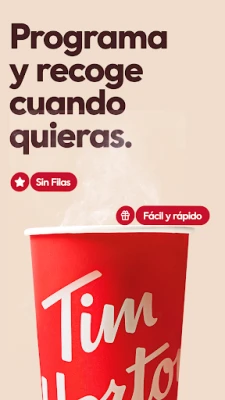 Con TimsApp disfruta de tus cafés, desayunos, Timbits y más, de forma rápida y sencilla: