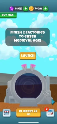 What better way to get ahead of the competition than by getting an early start, and what’s earlier than the stone age!? Hire cavemen to work in your factory and do the heavy lifting to grow your business. Upgrade your factory to move forward in time and hire more workers in each age to grind out more and grow your business. Keep your eyes on the prize and build a business that will last into the future and beyond!