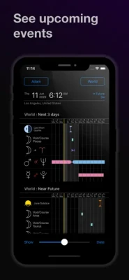 Time Nomad calculates your astrological transits, phases of the Sun and the Moon, movement of planets through the Zodiac.
