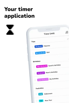 Download Time Until to activate multiple timers and fall in love with the amazing options it includes: widgets, restart history, notifications and alerts when it ends or reaches targets, categories to organize the timers and much more.