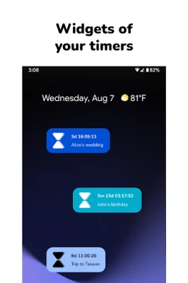 Count the days until an event or keep track of the time left until your wedding or any time in the future with this multi timer app with widgets. For example, it's perfect for making sure you don't miss any birthdays of people you care about (it will let you know a few days before so you can plan the gift!)