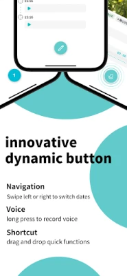 Dynamic button: Innovative multi-functional dynamic button. It's not just an input key or a navigation key. With it, you can switch to the previous or next day; it's also a voice key, long-press to add voice recordings; it's a return key, allowing you to quickly return to today when switching to other days; it's also a shortcut key, drag it to quickly open the camera and capture wonderful moments!