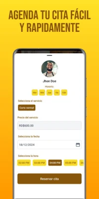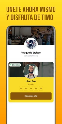 2. Descubra negocios y proveedores de servicios Explore una amplia variedad de negocios disponibles en la plataforma. Cada negocio muestra información detallada, desde los servicios que ofrece hasta los proveedores de servicios asociados, como peluqueros, barberos o estilistas. Encuentra fácilmente el profesional perfecto para tus necesidades y agenda.
