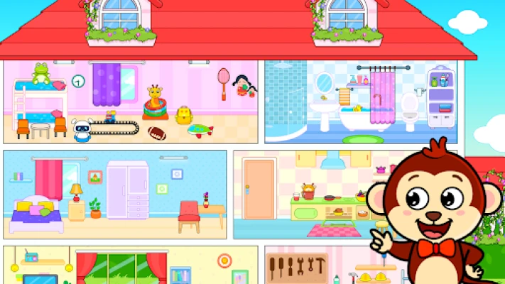 Beautiful Graphics and Animations: Each room is beautifully designed with vibrant colors and charming animations that captivate and engage young minds.