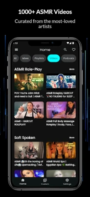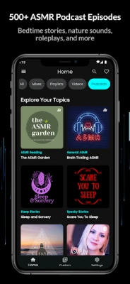 • ASMR Podcasts: Curated episodes from leading ASMR podcasts, plus add any podcast channel you love.