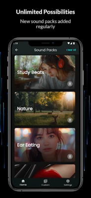 • ASMR Trigger Sounds: Ambient, Brushing, Crinkling, Ear Attention, Focus, Mouth Sounds, Lofi Music, Nature Sounds, Rain, Household Objects, Personal Care, Scratching, Squeezing, Tapping, White Noise, Brown Noise, and more.