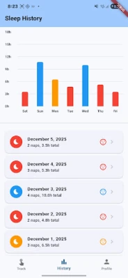 📊 Sleep History: visualize sleep patterns over the last 7 days.