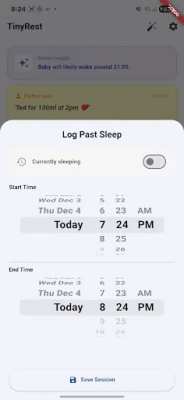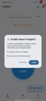 🤖 AI Sleep Predictor: Powered by Google Gemini, TinyRest learns your baby's patterns to predict the next "Sweet Spot" for a nap.