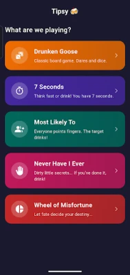 WHY TIPSY? ✅ 5 Unique Games: Board game, speed, secrets, and luck combined. ✅ +500 Cards & Dares: You'll never get bored. ✅ Fully Customizable: Add as many players as you want. ✅ Free to Play