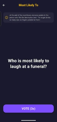 👉 MOST LIKELY TO (Finger Pointing) "Who is most likely to end up in jail?" "Who is most likely to throw up tonight?" On the count of 3, everyone points to the person fitting the description. No hard feelings!