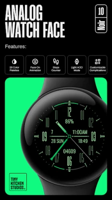 An elegant, analog Wear OS watch face with face on animation that pairs well with formal outfits.