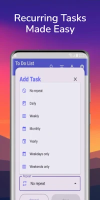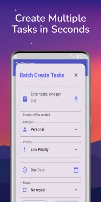 - Simple task setup: Easily add a new task to your to do list.