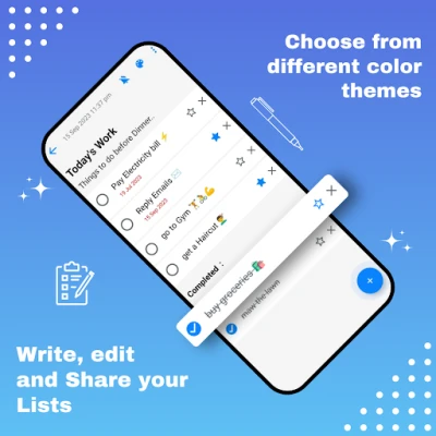 To-Do Lists is a very simple and free to use to do list Task Manager app. You can quickly write down your to-do list using this app and set Reminders on them. In this app, you can easily write todo list, shopping lists and tasks along with descriptions related to those lists. Furthermore, a person can Manage Tasks or Todo-list from the Home Screen using its to do list widget. Also, you can select a color theme for your to-do-lists from the given colors, which can be changed later after saving the list. Its UI is inspired by Apple's Reminders App.