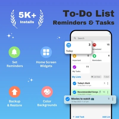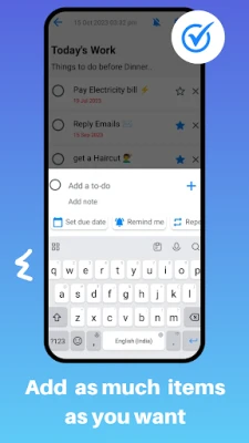 You can easily type as many todo tasks with as many list items as you want, along with their titles. you can also use our simple and efficient app to give descriptions to your to.do.list if you want which can also be used for taking Notes. One can easily View, Edit, Delete, and share his or her To.Do.list Reminders and get Notifications of them using this To Do Reminder App. you don't need to press any save button or manually save your to.do.list tasks after typing them, just type things to do and press the back button and that's it, the app will automatically save your to do tasks lists and display it on the Main Screen of the app.