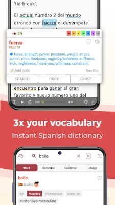 - Look up quickly with an offline translation box (detailed Spanish grammar, pronunciation, examples, and illustrations)