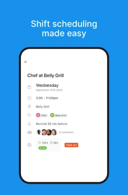 • Employees can set reminders for upcoming shifts, helping them be on time.