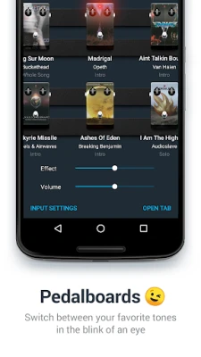 A huge collection of song presets allows you to choose effects from light acoustic sounds of "Come As You Are" to crushing heavy roars of "Master Of Puppets".