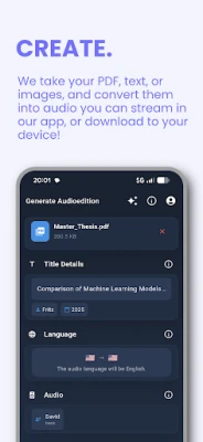 Turn text into lifelike audio, clone your voice, and publish your own audiobooks to the world.