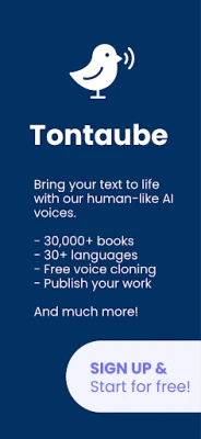 Tontaube is the ultimate AI audio platform that lets you Create, Publish, and Listen. Whether you are an author looking to self-publish, a creator making voiceovers, or a listener enjoying the classics, we have you covered.