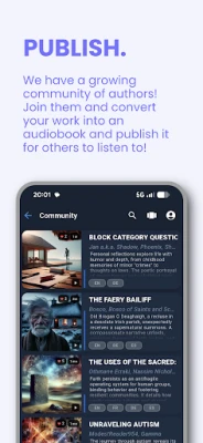 🎙️ FOR CREATORS: Create & Publish Turn your writing into immersive audiobooks and share them with our growing community.