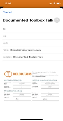 You’ll appreciate how quickly you can find, share, and document a toolbox talk with workers on the jobsite. When you’re finished, click “Document Toolbox Talk” to collect names and signatures of attendees. The app generates a PDF with all the information you need to satisfy your safety training requirements.