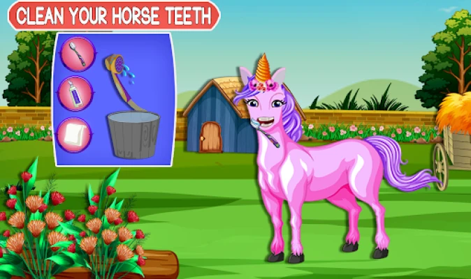 We welcome you to play tooth fairy horse caring salon game and pony dress up games for boys and girls. Meet the most fashionable pony horse in rainbow magic salon. Have an opportunity to be a pet care taker and take care of a princess horse as an owner of pony, clean the stable and do makeover skills in this pet dressing games. Begin your colorful day with a unicorn horse game with many makeup tools and fashion design with different tools in this pony care games for girls. Enter into an open world of unicorn animal salon in this tooth fairy princess horse makeover. Try your own imagination styles that you have never tried on other horse makeover games for boys and girls in farm house games.