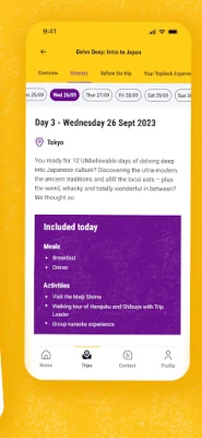 - Trip countdown: don’t lie to yourself by saying you won’t check every 2 secs. - Trip itinerary: the lowdown of what’s happening day by day, at your fingertips. - Access to Your Topdeck Experience: Your Inclusions, Your Options, Trip Leaders Rate + City Insiders Love. Btw, you can book some of Your Options on the app AND unlock Local Lowdown Maps to specific cities. - Your details: personal, travel + contact deets you can edit on-the-go!