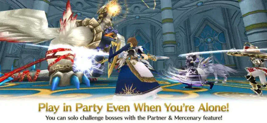 You can even enjoy party play when you are playing alone by borrowing and battling together with other player's character known as "mercenary" or by summoning a "partner" from your own sub-characters!