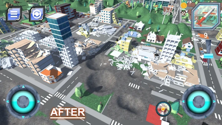 Break through the air defense and drop a nuclear bomb on the city. Everething in affected area will be smashed. Nuclear war is started!