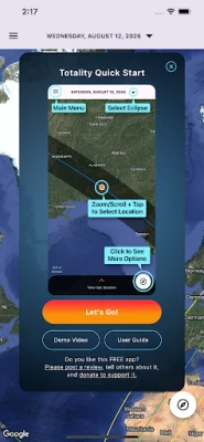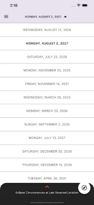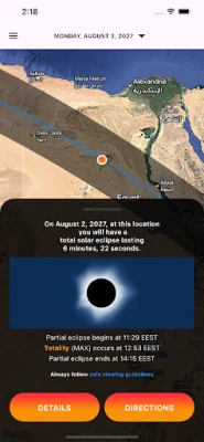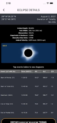 • Using your phone's GPS, the app will tell you what you'll see for these eclipses at your current location, if anything, and show the nearest locations where you can witness totality.