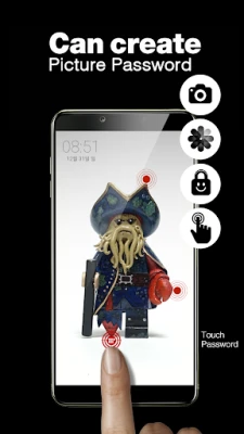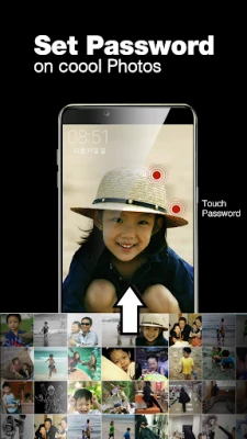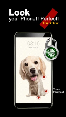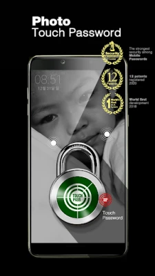 The touch lock screen can simply set a "touch password" with the touch of specific positions on my photo such as eyes, nose, mouth, face, or hand.