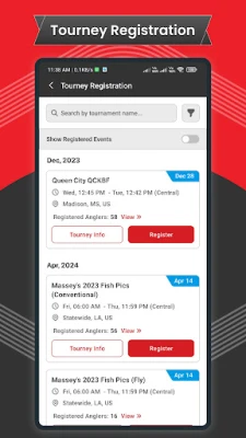 - Register for local, live or online tournaments. - Submit fish to multiple tournaments.